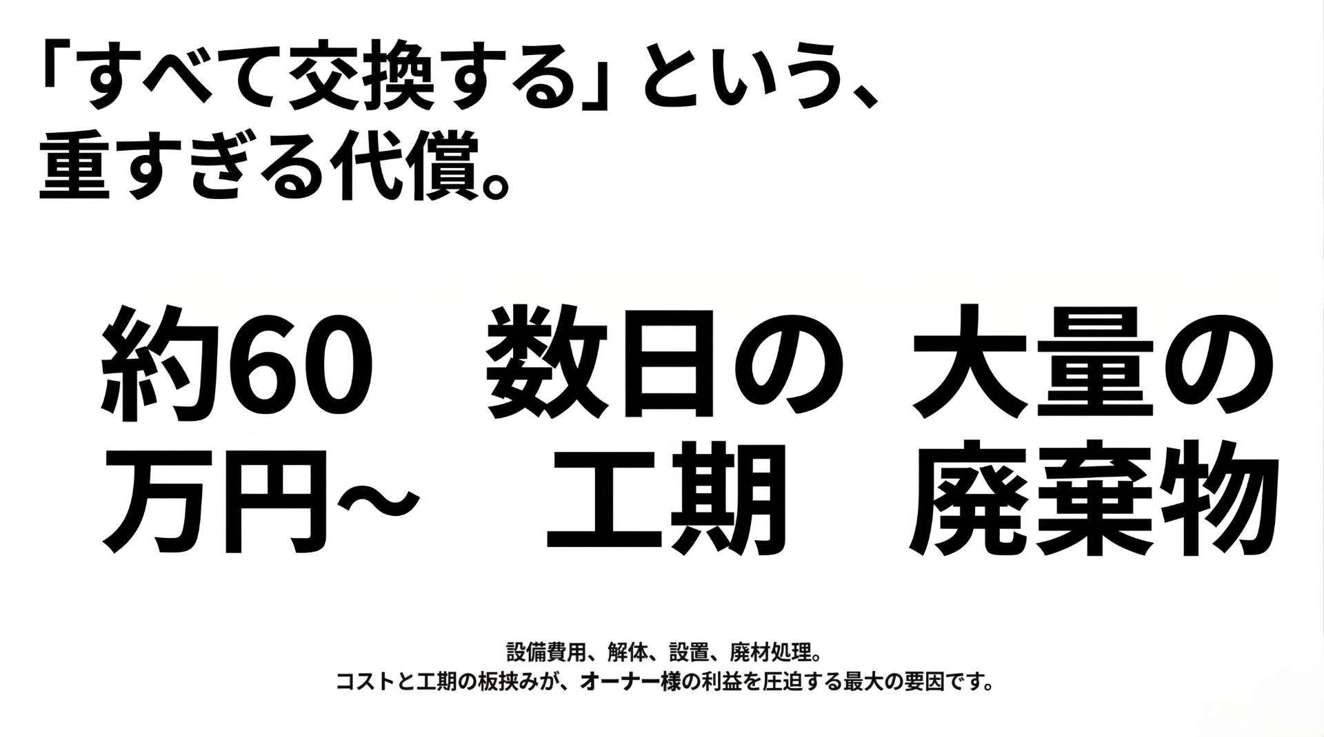 さらに、既存の設備を活かすため産業廃棄物が出ず、環境に優しいSDGsに貢献できるという隠れたメリットもあります。
